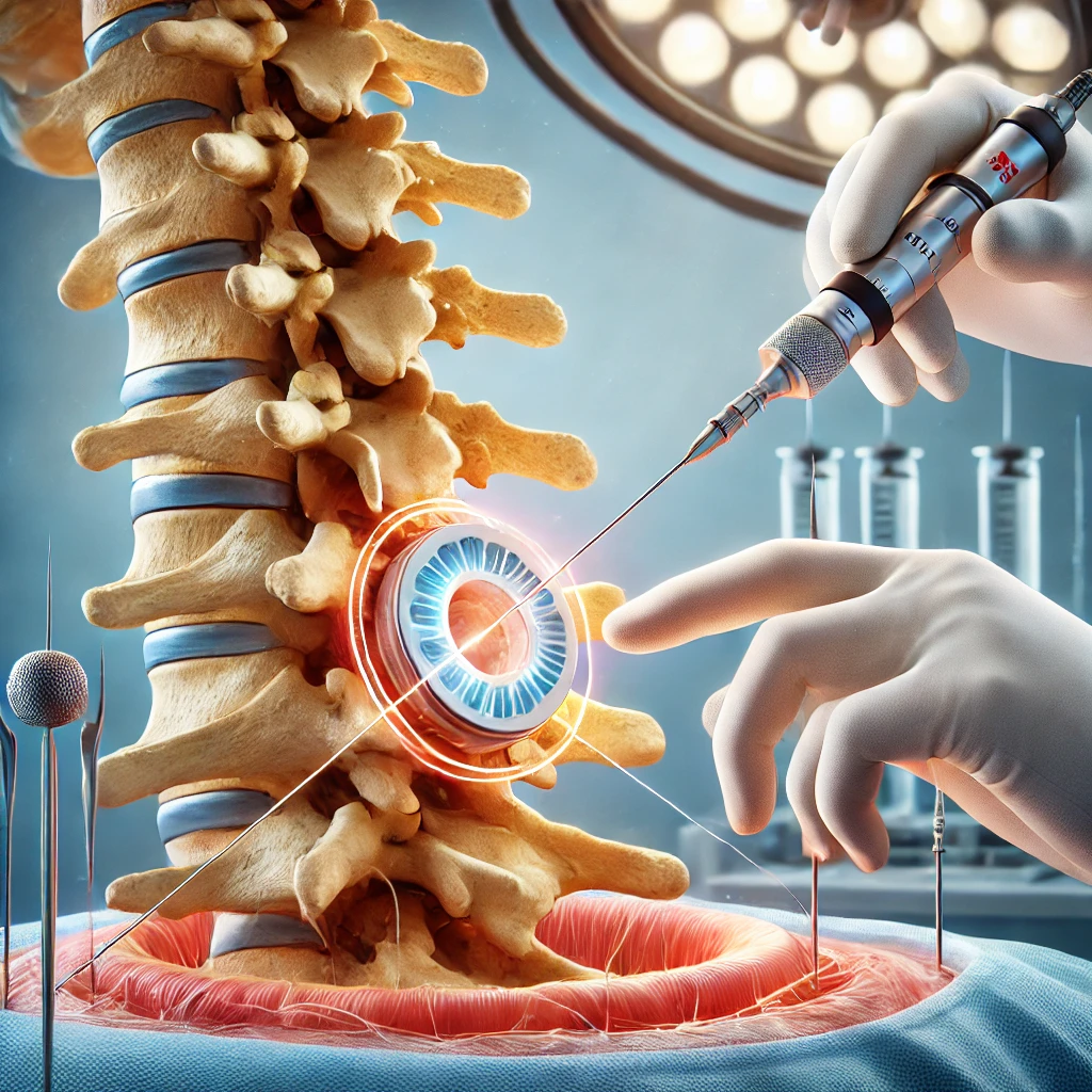 - Διαδικασία Επέμβασης: Ο γιατρός εισάγει ειδικό καθετήρα στον μεσοσπονδύλιο δίσκο υπό ακτινοσκοπικό έλεγχο. Με τη χρήση ενέργειας (π.χ., laser ή ραδιοσυχνοτήτων), αφαιρεί μέρος του υλικού του δίσκου, μειώνοντας την πίεση στα νεύρα.